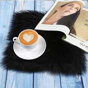 Sibba Faux Fur Area Rugs Chair Pad Protectors 12 inch Mini Square Cover Seat Fuzzy Cushion Carpet Mat Soft Fluffy Rug Couch for Living Bedroom Sofa Nail Art Photography Background Locker Decor (Black)