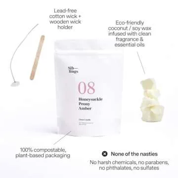 Show moreExperience the joy of creating your own unique atmosphere with the Siblings Essentials Candle Refill Kit. This delightful DIY kit is not only designed for candle lovers but also champions sustainability. Immerse yourself in the enchanting fragrances of Blooming Peonies and Sweet Honeysuckle, perfectly rounded by deep warm woods and amber. Made with eco-friendly coconut and soy wax, each kit not only fills your space with a clean, irresistible aroma but also aligns with your values for a sustainable lifestyle. This exceptional product allows you to fill your favorite candle vessels indefinitely, creating an endless supply of comfort and ambiance.