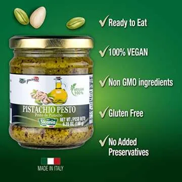 SICANIA Pistachio Pesto Sauce, Savor the Taste of Sicily with Our Healthy, Palm Oil-Free Recipe - Ready-to-Eat, 6.35 oz (180Gr)