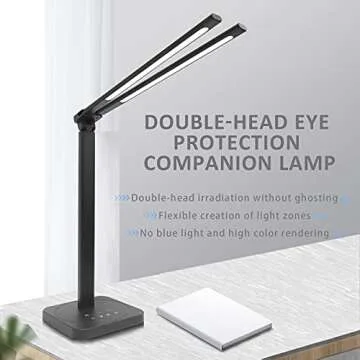 SICCOO LED Double Head Desk Lamp,Double Swing-arm Table Lamps, Piano Lamp,Adjustable Brightness Color Temperature ,for Home/Reading/Offices/Bedrooms/Dormitories
