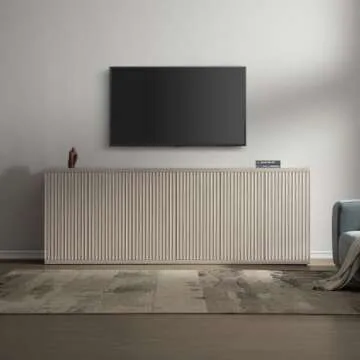 Its minimalist profile is complemented by unique waveform panel doors, offering not just easy access to its spacious interior but also a chic touch to your decor. The pop-up design not only maintains a sleek aesthetic but serves the practical purpose of allowing you to quickly reach for stored items. Whether it’s for a casual family dinner or an elegant gathering, this cabinet enhances the overall mood of the space.