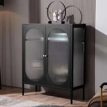 Show moreIntroducing the SICOTAS Modern Sideboard Cabinet, a beautiful fusion of style and functionality, expertly crafted to elevate your home decor. This sideboard cabinet is constructed from stable and durable cold-rolled steel, making it a far superior choice compared to traditional wooden furniture. Emphasizing both strength and aesthetics, the cabinet features elegant corrugated glass double-doors that allow you to showcase your cherished items while adding a textured visual component to your space. The sleek, matte black metal frame effortlessly complements various interior designs, ensuring it can serve as a captivating centerpiece in any room.