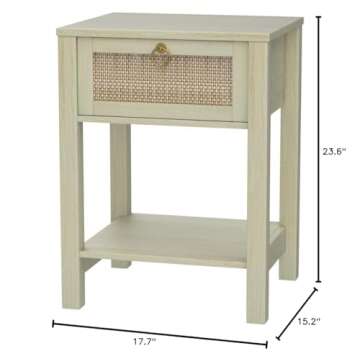 SICOTAS Nightstand Set of 2 - Rattan Decor Drawer with Brass Knobs Night Stand Wood Bedside Table Boho End Tables Side Tables with Storage Shelf