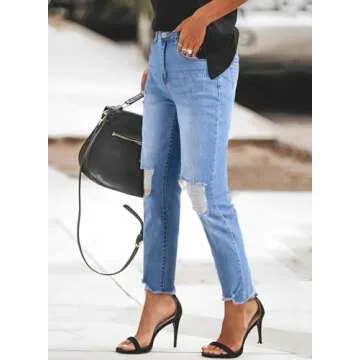 Sidefeel Women's Boyfriend Jeans Loose Zimbaplatinum Stretchy Ripped Distressed Denim Pants Size 12 Sky Blue