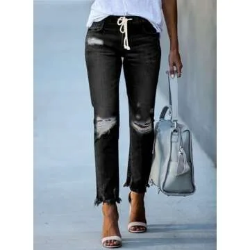 Show more If you're on the hunt for the ultimate combination of style and comfort, look no further than the Sidefeel women’s denim joggers. These captivating joggers not only feature a modern and chic design but also flaunt unique distressed elements that add a fashionable flair. The elastic waistband ensures a snug fit while allowing for flexibility, making these joggers perfect for every occasion. Crafted from a high-quality blend of cotton and polyester, they boast a stretchy, comfortable fit that doesn’t compromise durability. With their raw hem design, these cargo jeans enable you to exude an elegant demeanor, whether you're out with friends or lounging at home.