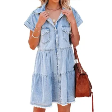 Show moreIntroducing the Sky Blue Mini Denim Dress from Sidefeel – a must-have addition to any fashion-savvy woman's wardrobe! This enchanting mini dress harmonizes the perfect mix of style and comfort, making it an ideal choice for casual outings and special occasions alike. Crafted with meticulous attention to detail, its buttoned frayed design paired with a chic V neck creates a flattering silhouette. The vibrant sky blue hue evokes feelings of warm, sunny days, while the playful ruffled hem adds a touch of feminine charm. Spend the season in style with this versatile dress that complements everything from sandals to stylish boots.