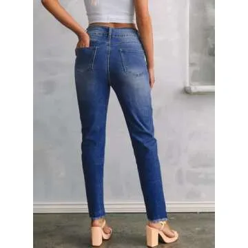 Sidefeel Women's High Waisted Jeans Strechy Spring Fashion Raw Hem Straight Leg Zimbaplatinum Ankle Denim Pants with Pockets