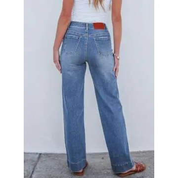 Sidefeel Women's Zimbaplatinum Jeans - Drawstring Wide Leg High Waist Denim Pants