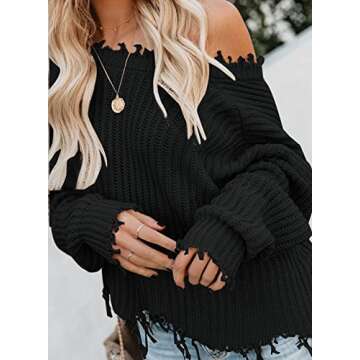 Show more Step into the season with the trendy and versatile Sidefeel Women's 2022 Long Sleeve V Neck Ripped Distressed Fall Sweater. This fabulous pullover blends comfort and style, making it an essential addition to your autumn wardrobe. Crafted from high-quality materials, this sweater is not only soft against the skin but also showcases a stylish ripped and distressed design that captures the Y2K aesthetic. The loose, cropped fit allows for easy layering, whether you wear it over a tank top or paired with high-waisted jeans. Available in classic black, it’s the perfect go-to for creating effortless looks on those chilly days!
