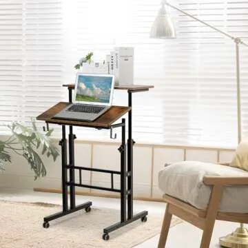 SIDUCAL Mobile Standing Desk, Portable Stand Up Desk, Small Adjustable Standing Desk Converter with Wheels Home Office Workstation, Rolling Desk Laptop Cart for Standing or Sitting, Rustic Brown