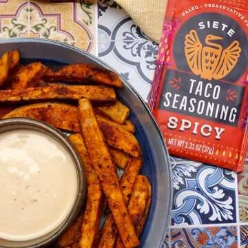 Show more Introducing the Siete Spicy Taco Seasoning Mix – a flavor-packed blend that stands at the intersection of health and taste! This seasoning mix is thoughtfully crafted to suit a variety of dietary preferences, making it an ideal choice for those adhering to gluten-free, vegan, paleo, and Whole 30 diets. Each packet is preservative-free and boasts 42 servings, bringing a delightful kick to your meals without compromising on your health goals. The secret to a quick, delicious dinner lies in this unique blend of spices that transforms ordinary ingredients into extraordinary dishes.