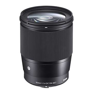 Show more The Sigma 16mm f/1.4 DC DN Contemporary Lens for Canon EF-M is a remarkable piece of photography equipment designed for those who aspire to capture stunning visuals. This lens is not merely an accessory; it represents the confluence of precision engineering and advanced optical technology. The compact design incorporates advanced inner focus technologies, allowing photographers to wield outstanding optical performance without the burden of weight. Whether you are shooting handheld or using a stable surface, you can trust this lens to deliver impeccable sharpness and clarity.