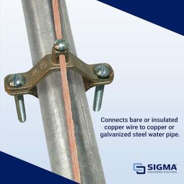 Show moreDiscover the ultimate solution to grounding with our top-of-the-line Pipe Grounding Clamp, a must-have for any home improvement or electrical project. This high-quality product connects bare wire to copper or steel water pipes or tubing, ensuring your connections are secure and reliable. With compatibility for pipe sizes ranging from 1-1/4 inches to 2 inches, this clamp is perfect for a variety of needs. Constructed from durable copper alloy, it boasts a robust design paired with zinc-plated steel screws that resist rust and corrosion, enhancing its longevity and performance.