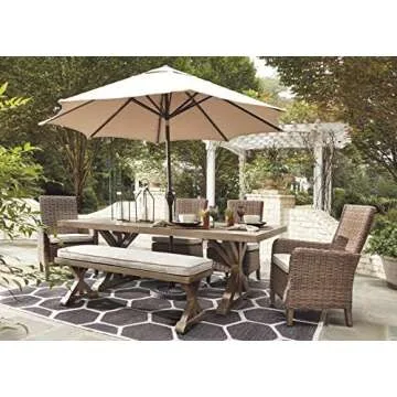 Signature Design by Ashley Beachcroft Modern Farmhouse Outdoor Dining Table with Porcelain Top, Beige