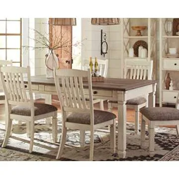 Signature Design by Ashley Bolanburg Farmhouse Dining Table with Drawers, Seats up to 6, Whitewash