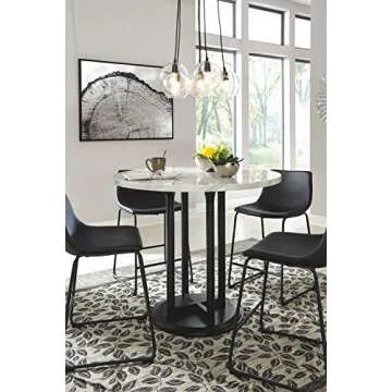 Signature Design by Ashley Centiar Contemporary 42" Round Counter Height Faux Marble Dining Table, Black & White