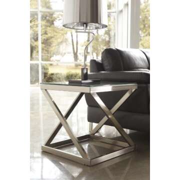 Signature Design by Ashley Coylin Modern Square Brushed Nickel End Table with Beveled Glass Top, Silver