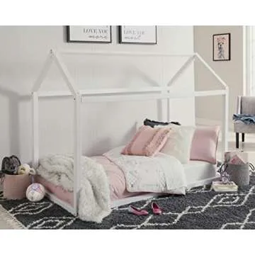 Show moreUnveil the magic of bedtime with the Signature Design by Ashley Flannibrook Contemporary House Bed Frame in Twin Size. This enchanting bed frame isn’t just a place to sleep; it’s a whimsical escape that sparks your child’s creativity. Constructed from high-quality, durable wood and finished with a crisp white hue, it features a beautifully crafted house design complete with a charming roofline. Perfectly sized at 43.25" W x 79.75" D x 61.25" H, it's an ideal choice for kids of all ages, providing a cozy and fun sleep environment that effortlessly transforms their bedroom into a magical retreat.