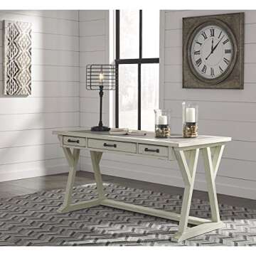 Transform your workspace with the Signature Design by Ashley Jonileene Farmhouse Home Office Desk. Effortlessly blending rustic charm with a modern twist, this large home office desk is designed to inspire creativity and productivity in any setting. Whether you’re working on an important project, diving into crafts, or need a cozy area to write, the airy design and spacious surface make this desk an ideal choice for your home office. Constructed from durable veneers, wood,...