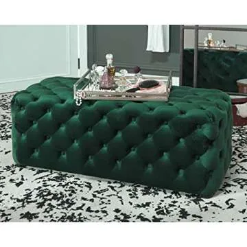 Signature Design by Ashley Lister Contemporary Velvet Upholstered Tufted Accent Ottoman, Green