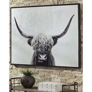 Signature Design by Ashley Pancho Modern Framed Cow Canvas Wall Art, 48 x 36, Black & White