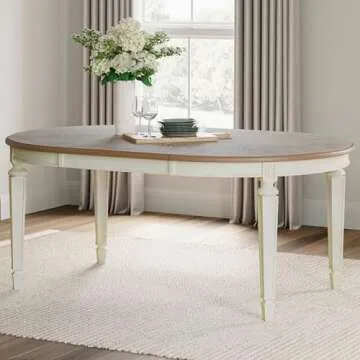 Signature Design by Ashley Realyn French Country Oval Dining Room Extension Table, Chipped White