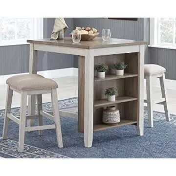 Signature Design by Ashley Skempton 3 Piece Counter Height Dining Set, Includes Table and 2 Barstools, Whitewash