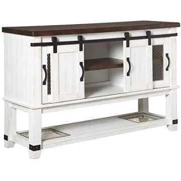 Signature Design by Ashley Valebeck Farmhouse Dining Room Server or Buffet Cabinet, White & Brown