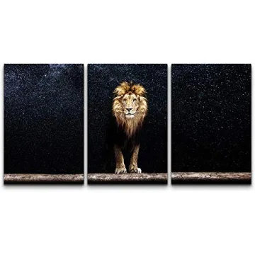 Show moreIntroducing the stunning SIGNFORD Canvas Print Wall Art Set, featuring a dramatic lion portrait set against a mesmerizing dark galaxy backdrop. This magnificent piece of modern artwork is a perfect fusion of wildlife aesthetics and contemporary design, crafted from premium quality materials that ensure a high-definition print. Measuring a generous 24"x36" on each of its three panels, this artwork is sure to become a statement piece in any room. The vibrant colors and stunning imagery create an enchanting atmosphere, making it ideal for elevating the decor of your home or office.