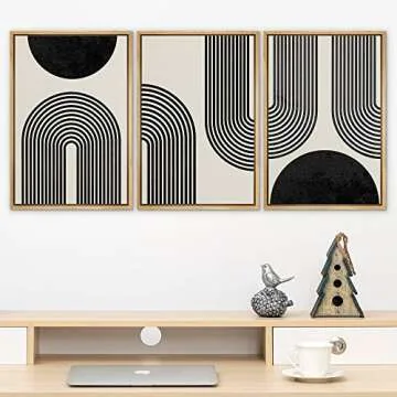 SIGNLEADER Framed Canvas Print Wall Art Spiral Parabolas & Solid Semi Circle Geometric Shapes Drawings Modern Art Contemporary Edgy Black and White for Living Room, Bedroom, Office - 24"x36"x3 Natural