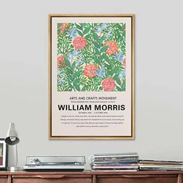 SIGNLEADER Framed Canvas Print Wall Art William Morris Rose Flower Garden Nature Wilderness Illustrations Fine Art Rustic Scenic Relax/Calm Colorful for Living Room, Bedroom, Office - 16"x24" Natural