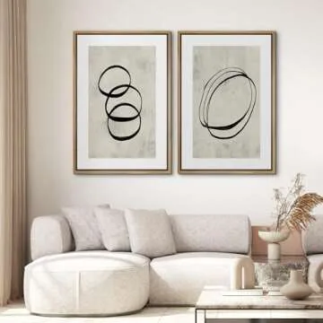 SIGNWIN Framed Canvas Print Wall Art Set Black Tan Ring Spiral Collage Abstract Shapes Cozy Neutral Modern Art Decorative Nordic Multicolor for Living Room, Bedroom, Office - 16"x24"x2 Natural