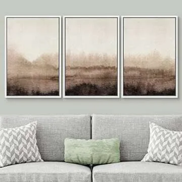 SIGNWIN Framed Canvas Print Wall Art Set Pastel Watercolor Brown Landscape Nature Wilderness Illustrations Modern Art Decorative Nordic Abstract for Living Room, Bedroom, Office - 24"x36"x3 White