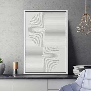 SIGNWIN Framed Canvas Print Wall Art White Vintage Geometric Spirals Abstract Shapes Illustrations Modern Art Decorative Contemporary Colorful for Living Room, Bedroom, Office - 16"x24" White