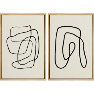 SIGNWIN Framed Wall Art Print Set Black Lines Over Tan Plain Background Abstract Swirly Cozy Neutral Modern Art Mid-Century Modern Expressive for Living Room, Bedroom, Office - 24"x36"x2 Panels
