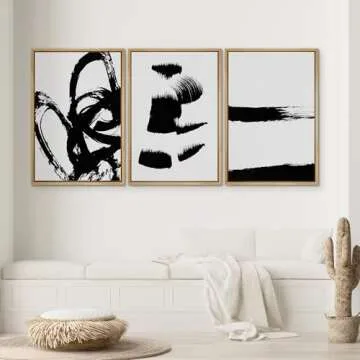 SIGNWIN Framed Wall Art Print Set Grunge Style Black & White Paint Strokes Abstract Shapes Illustrations Modern Art Bohemian Group Dramatic Grey for Living Room, Bedroom, Office - 16"x24"x3 Natural