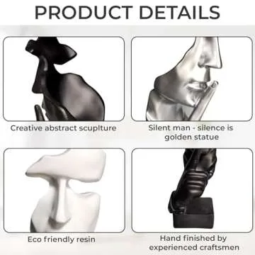 Show more Introducing the exquisite Silence Is Golden Thinker Statue, a peaceful sculptured piece that elegantly merges art with tranquility. Crafted with precision from high-quality resin, this modern and creative abstract sculpture stands at a striking 28cm, making it the perfect size to adorn your home or office. The thoughtful design captures the essence of silence and contemplation, allowing this silent man figurine to serve as a constant reminder to embrace peaceful moments in our hectic lives.