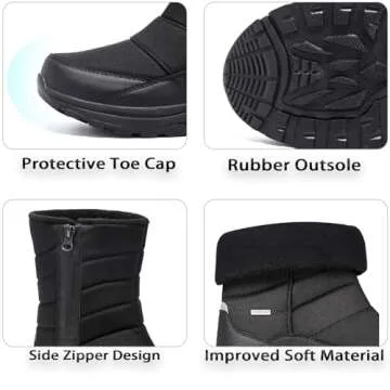 SILENTCARE Mens Winter Mid-Calf Snow Boot Fur Warm Waterproof Slip On Outdoor Athletic
