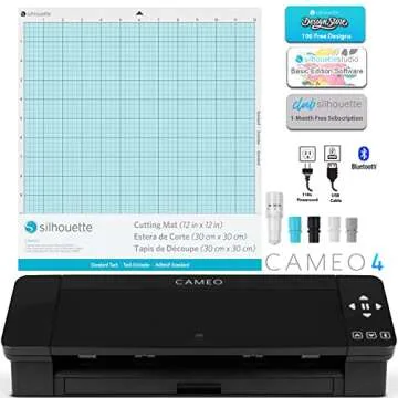 Show moreUnleash your creativity with the Silhouette Cameo 4 Vinyl Bundle. This comprehensive bundle includes 24 sheets of high-quality vinyl, a complete vinyl tool kit for effortless application, and a handy startup guide to get you crafting right away. Perfect for both novice and experienced crafters, this bundle empowers you to create stunning decals, personalized gifts, and intricate designs with ease. The Silhouette Cameo 4 is equipped with powerful features, including a built-in dual motor for faster cutting and the ability to work with a variety of materials, allowing you to elevate your DIY projects like never before.