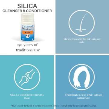 Show moreIf you're seeking a natural way to enhance your overall health and beauty, look no further than the Schuessler Tissue Salts Silica tablets. This mineral supplement is not just any ordinary capsule; it's a powerhouse of Silica, also known as Silicon Dioxide, which plays a crucial role in supporting connective tissue health, as well as promoting radiant skin, healthy hair, and resilient nails. With the demands of our daily lives, ensuring that our body receives the essential trace elements it needs can be challenging—this is where Schuessler's expertly formulated tablets come into play.