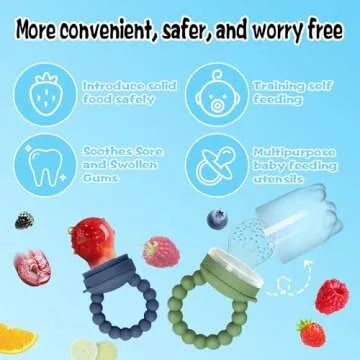 Silicone Baby Fruit Food Feeder, 2 Pack Freezer Tray with lid for Batch Prep,Introduce New Foods, Breastmilk Popsicle Molds, Silicone Teething Toys, Includes 6 Extra Food Pacifier