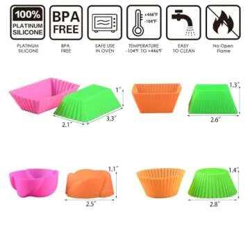 Silicone Baking Cups Cupcake Liners - 24 Pcs Reusable Silicone Molds Including Round, Rectanguar, Square, Flower Food Grade Silicone