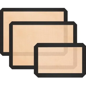 Show more Discover the ultimate baking companion with our Silicone Baking Mat 3-Pack, meticulously designed to elevate your baking experience, whether you’re a novice baker or a seasoned pro. Crafted from high-quality food-grade silicone that is BPA-free, these mats not only ensure the safety of your meals but also promote even cooking, enhancing flavors and health benefits. Boasting a remarkable heat-resistant capability ranging from -40°F to 446°F, they are ideal for a variety of baking tasks—be it baking delicious cookies, creating elegant pastries, or roasting vegetables to perfection.
