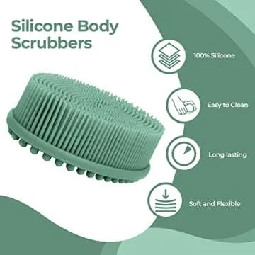 Show more Introducing the ultimate solution for your shower routine - the innovative silicone shower body scrubber! Crafted from 100% high-quality silicone, this scrubber boasts a unique texture designed to effectively remove dirt, oil, and dead skin cells, giving your skin the rejuvenation it craves. The soft and gentle design ensures that your skin feels pampered while being tough enough to exfoliate away impurities without any irritation.