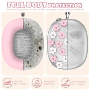 Silicone Case for AirPods Max Headphones,Clear Flower Soft TPU Ear Cups Cover,Ear Pad Case Cover,Headband Cover for AirPod Max,Transparent Protector for Apple AirPods Max (2024/USB-C) for Women,Pink