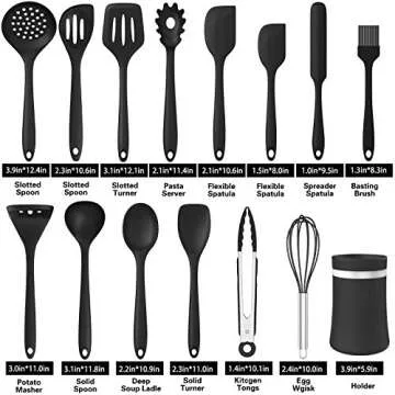 Silicone Cooking Utensil Kitchen Utensil Set, 24 Pcs Non-stick Cooking Utensils Spatula Set with Holder by AIKKIL, Heat Resistant Kitchen Gadgets Tools Set for Cookware(Black)
