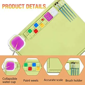 Silicone Craft Mat, Nonstick Silicone Painting Mat 20"x 16" Silicone Art Mat with Cup and Paint Holder, Multipurpose Silicone Art Mat for Painting Clay Resin Casting