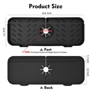Silicone Faucet Mat for Kitchen, Sink Splash Guard, Bathroom Faucet Water Catcher Mat, Sink Draining Pad Behind Faucet, VENMATE Keep Drying Kitchen Accessories (Black (14.6" x 5.5"))