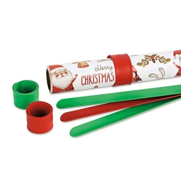 Introducing the **Silicone Holiday Red & Green Flip Wraps** - the ultimate storage solution for your wrapping paper and more! Each set includes six sturdy, silicone-covered metal strips designed to make wrapping and storage a breeze. Simply slap one on a rolled item, and watch it flip into a secure circle that grips your gift wrap rolls tightly, preventing any unraveling or damage. The one-inch wide by nine-inch long design is not just for gift wrap; it can also effectively organize electrical cords, computer...