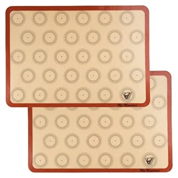 Silicone Macaron Baking Mat - Set of 2 Half Sheet (Thick & Large 11 5/8" x 16 1/2") - Non Stick Silicon Liner for Bake Pans & Rolling - Macaroon/Pastry/Cookie Making - Professional Grade Nonstick